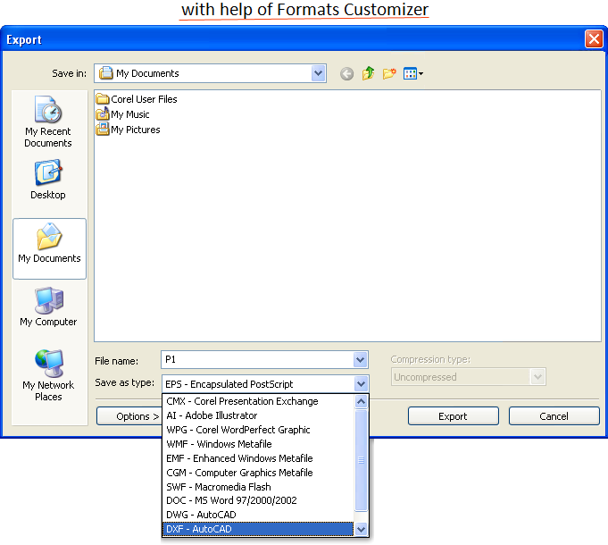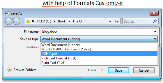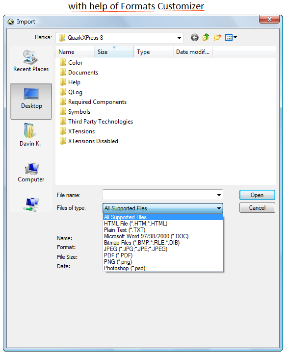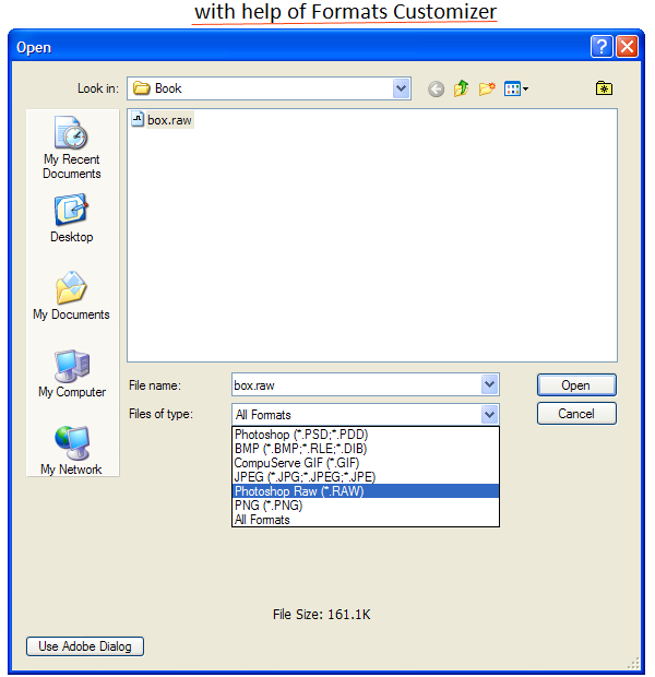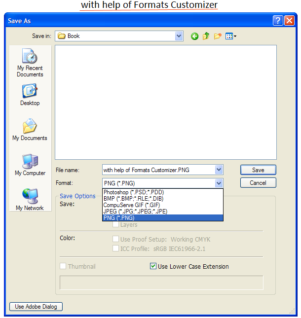 Результаты диалога файлов с Formats Customizer:| Продукты от Adobe Systems |