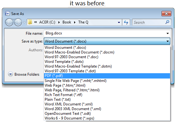 Microsoft Office Word. Диалоговое окно сохранения. Windows Vista
